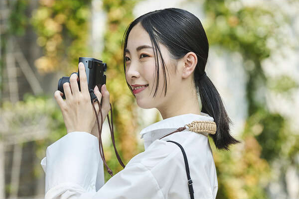 首や肩に掛けられるので、バッグから取り出さずにすぐに撮影が可能。撮りたい瞬間を逃しません。