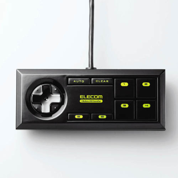 各ボタン毎に設定できる連射機能を装備した6ボタンデザインゲームパッド。コンパクトなのに握りやすいボディになっています。USBインターフェイス対応。標準ドライバで動作。接続してすぐ使用できます。