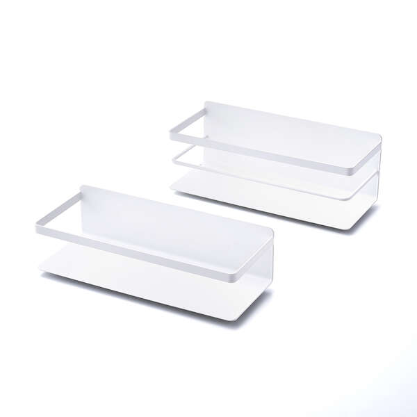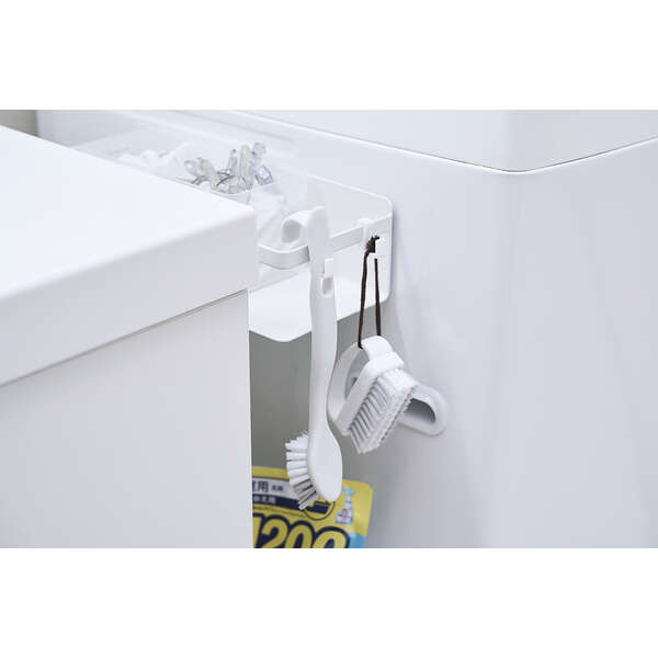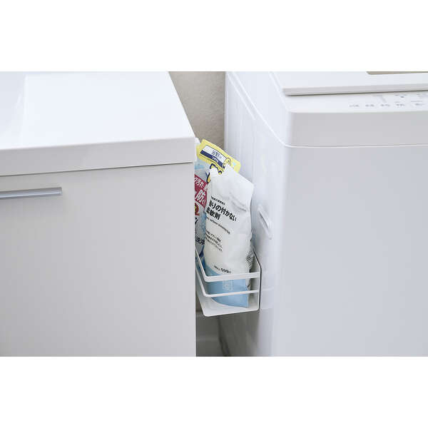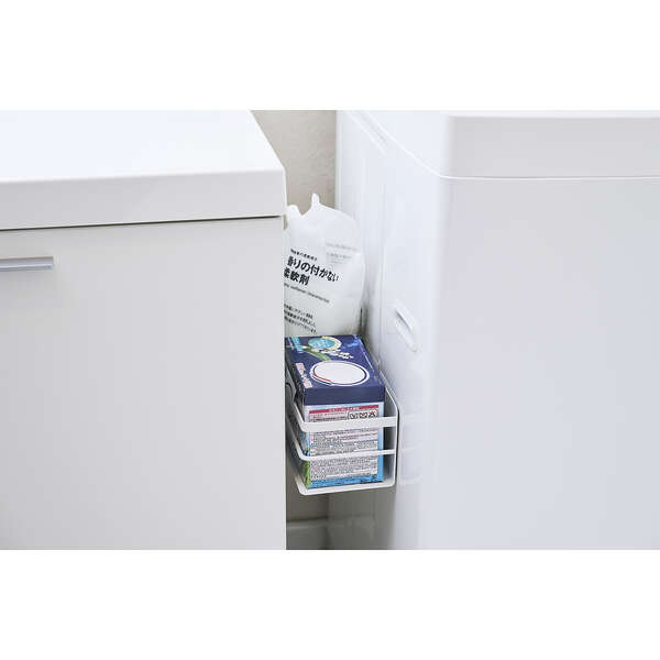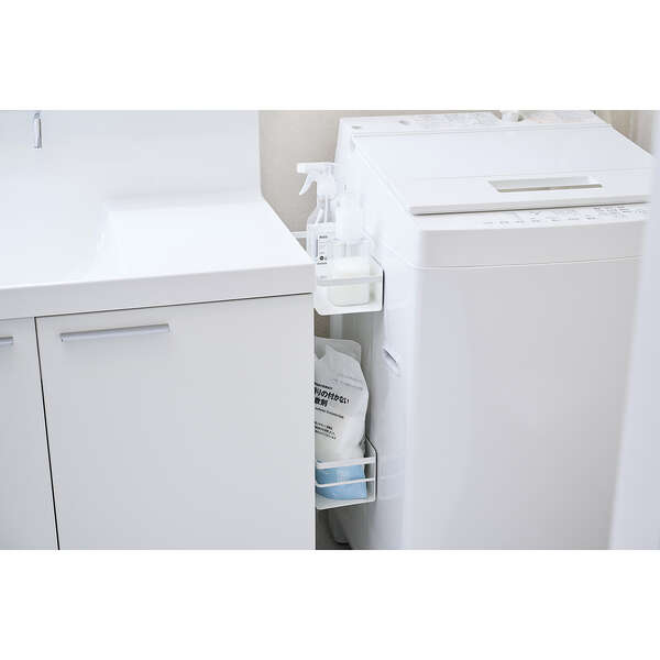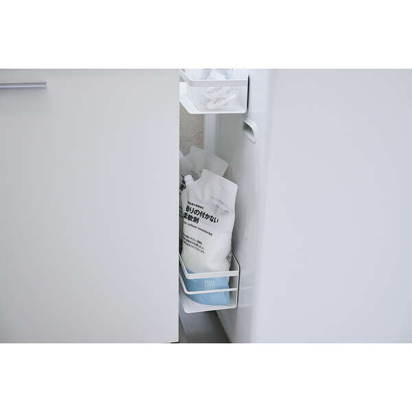 自由に設置して、賢く収納。洗剤や特大サイズの詰め替え洗剤もまとめて収納できる、マグネット式洗剤ラックです。取りやすい位置や収納する洗剤の高さに合わせて自由に設置可能。下段は上段よりも高さのある設計で、2.5kgの大容量の詰め替えもすっきり収納できます。