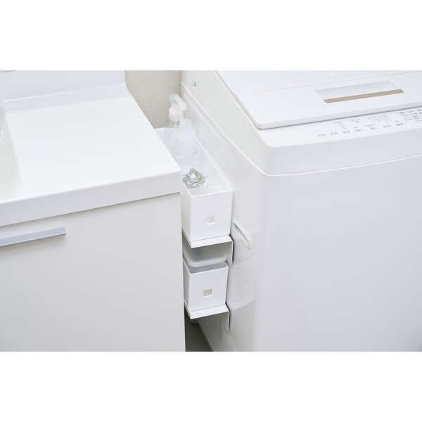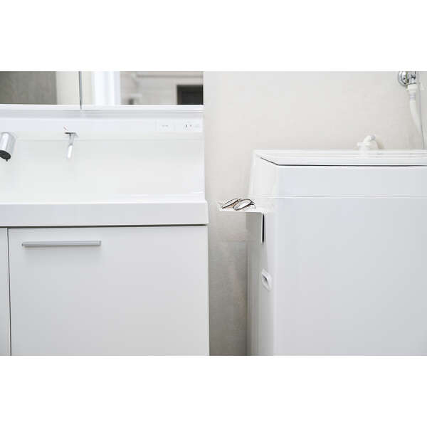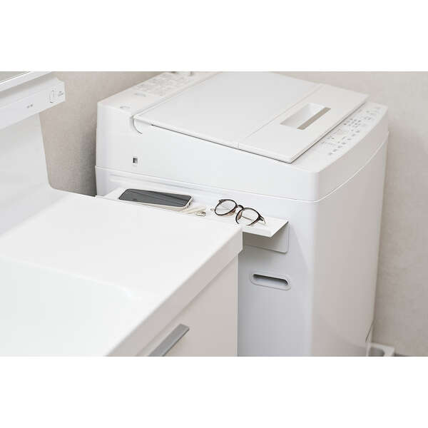 小物の落下を防いでスッキリ収納!洗濯機横の隙間などデッドスペースを有効活用できる、マグネット式洗濯機横隙間ラックです。折り返し付きで滑り落ちにくく、スマートフォンや眼鏡、アクセサリーなどの一時置きに便利。ゴミ箱やお持ちの収納ケースを置くなど、使い方に合わせてカスタムできます。
