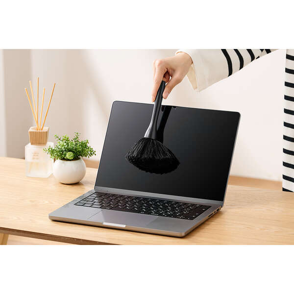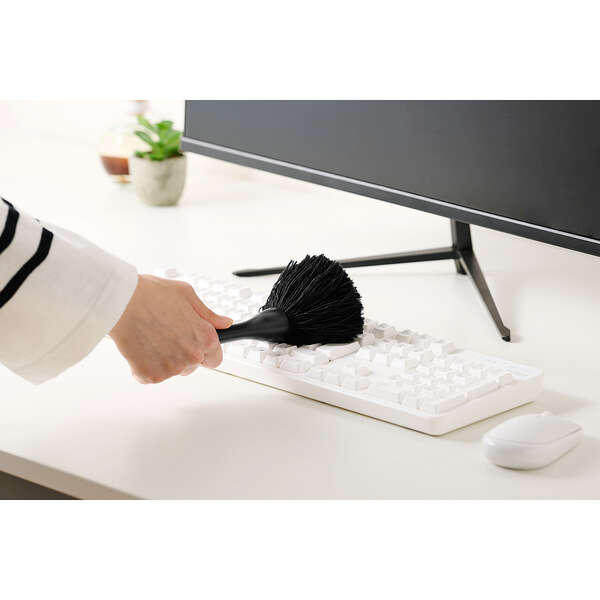 マグネット付きでピタッ!と取り付けて収納できる、画面やOA機器の掃除に便利なクリーニングブラシです。帯電防止繊維入りのブラシが機器表面の静電気を除去し、ホコリを付きにくくする除電タイプです。