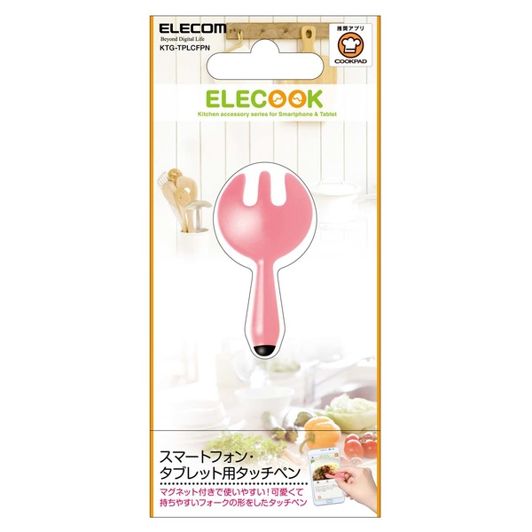 スマートフォンやタブレットをキッチンで楽しく快適に使えるアクセサリーシリーズ“ELECOOK(エレクック)”。マグネット付きで使いやすく、可愛くて持ちやすいフォークの形をしたタッチペン。