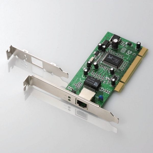 ギガビットイーサネット(1000BASE-T)に対応した有線LANボード。PCIバスに接続が可能。ジャンボフレームに対応し、さらに高速なデータ転送が可能。Low Profile PCIバス用スロットカバーも付属し、省スペースパソコンにも増設が可能。