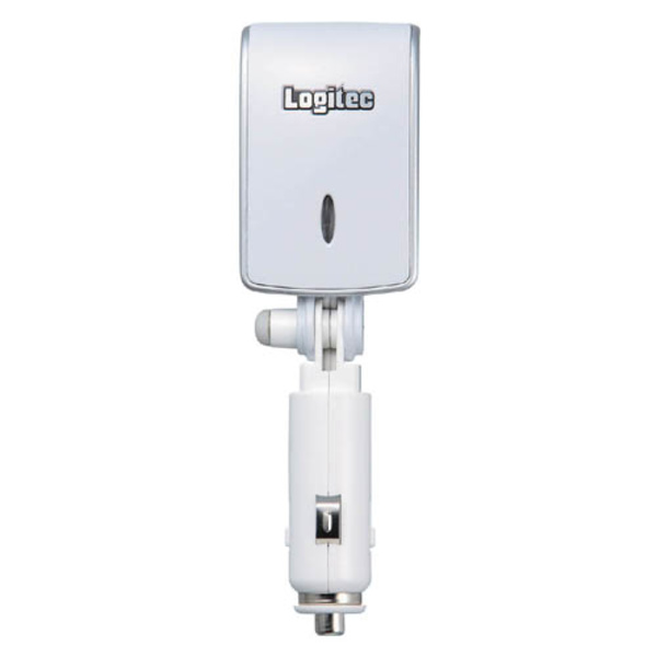 携帯音楽プレーヤーや携帯電話を接続することができる車載用FMトランスミッター。FM電波で音楽を送信するため、面倒な車内配線は不要。ホワイトモデル。