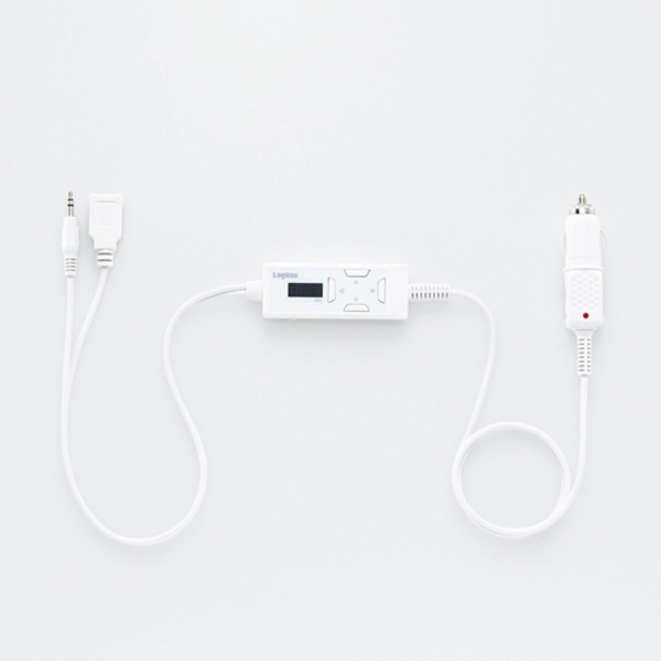オートスキャン機能FMトランスミッターです。自動車のシガーソケットに直結して、3.5mmステレオミニ入力ジャックを備えたオーディオプレーヤーの音楽をFMカーステレオから再生することができます。また、USB充電に対応しています。