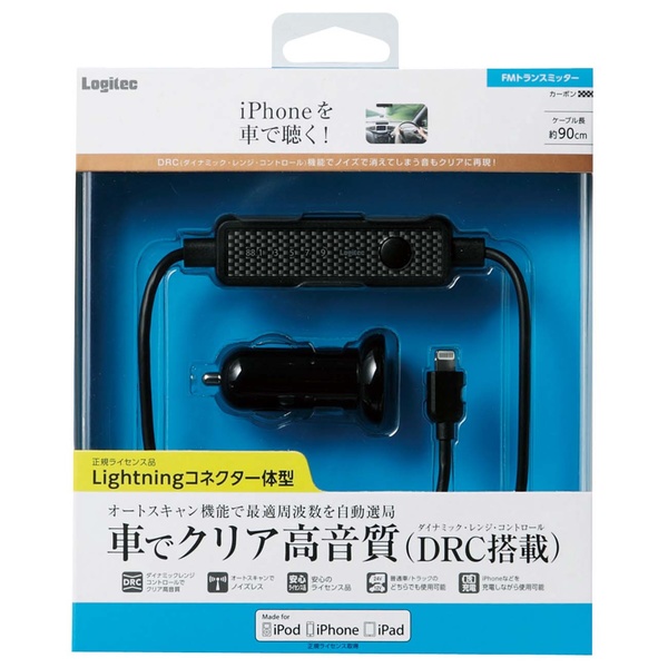 Lightning端子搭載iPhone/iPod・iPad用FMトランスミッターです。DRCやオートスキャンを搭載した充実した機能のトランスミッターです。