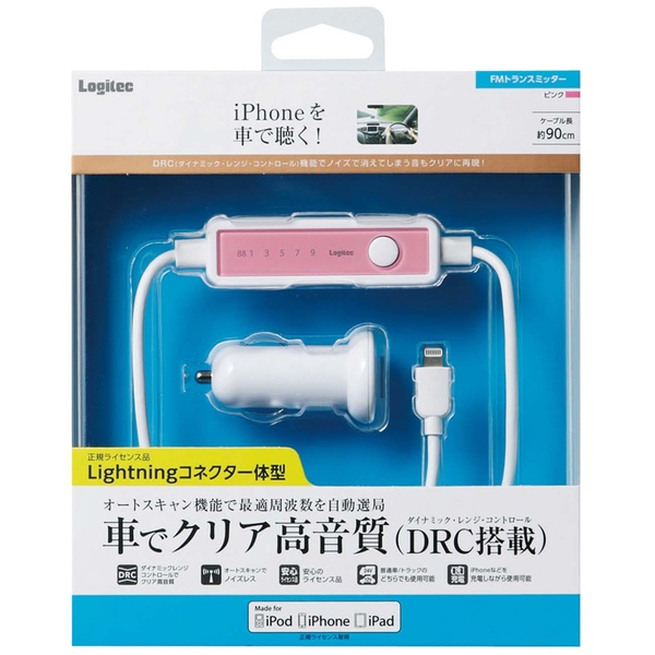Lightning端子搭載iPhone/iPod・iPad用FMトランスミッターです。DRCやオートスキャンを搭載した充実した機能のトランスミッターです。