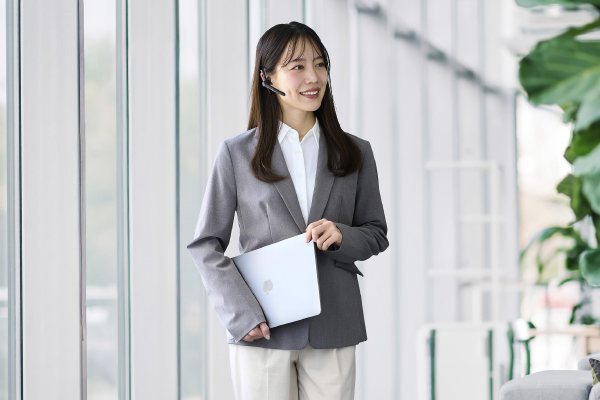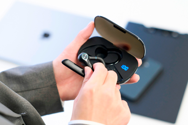 ヘッドセットは約13.7gの軽量設計で、会議や移動中も耳の負担を軽減して快適な着け心地です。
