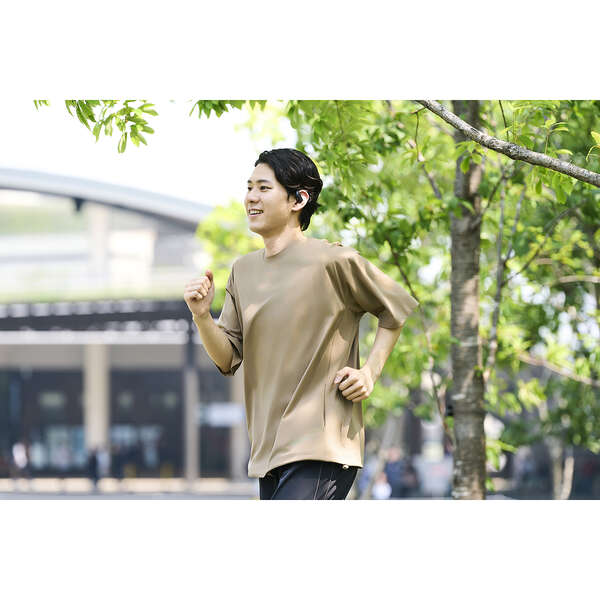 “ながら聴き”で、スポーツはもっと楽しくなる。耳をふさがず周囲の音を取り込みながら音楽を楽しめる、オープンイヤー型の完全ワイヤレスヘッドホンです。IPX5の防水設計で、運動中の汗や急な雨で濡れても安心して使えます。