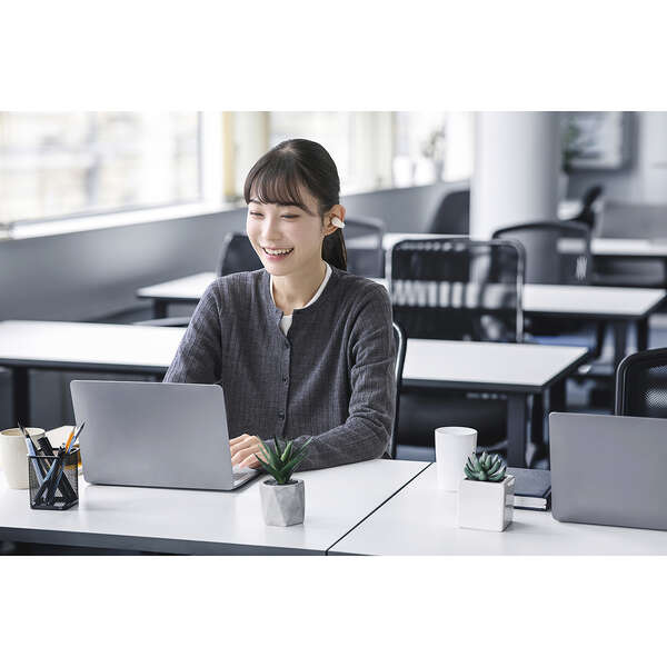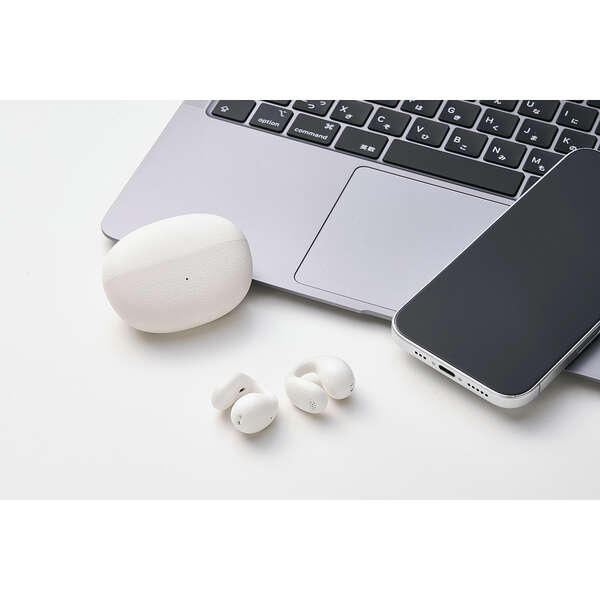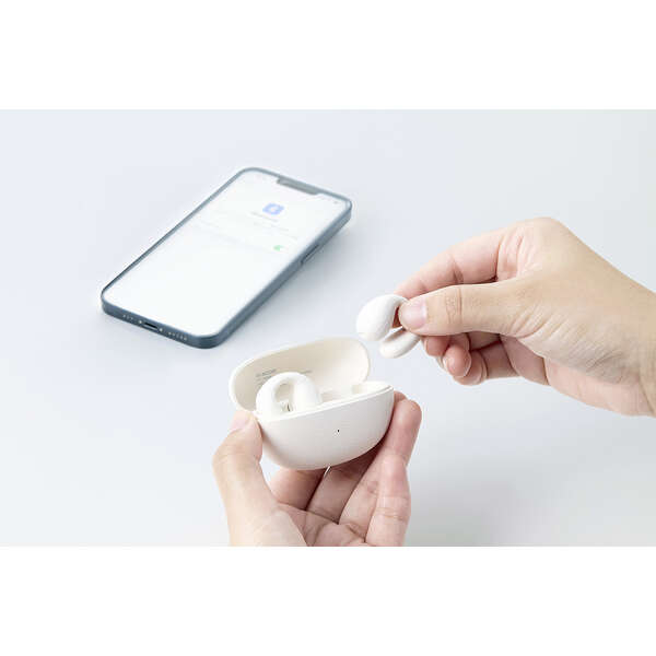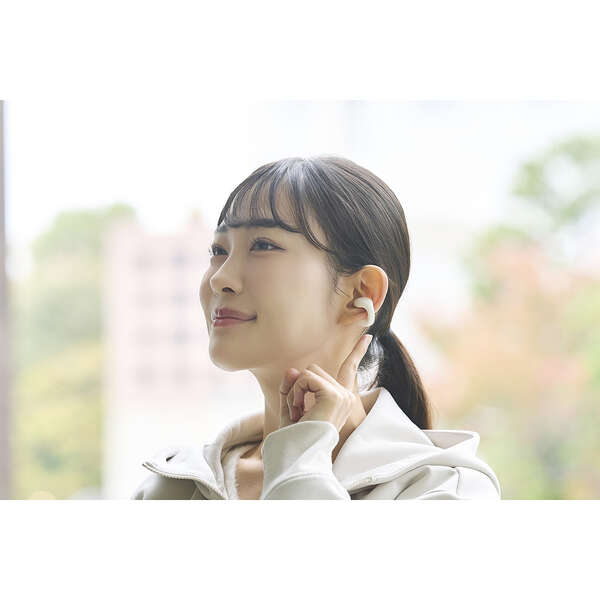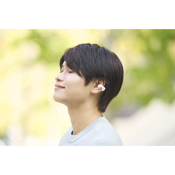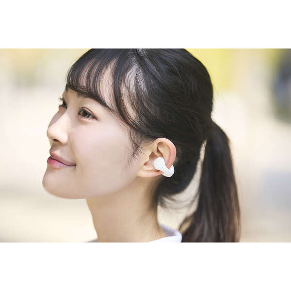 イヤーカフ形状で周囲の音も聞こえる、オープンイヤー型の完全ワイヤレスイヤホンです。耳をふさがない“ながら聴き”で、さまざまなシーンにおいて音楽や動画を高音質かつ快適に楽しめます。しなやかに動く柔らかブリッジが耳にやさしくフィットし、高い装着感を実現します。汗や雨などの水滴にも安心のIPX4の生活防水に対応しています。