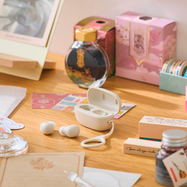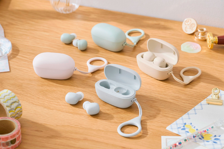 音楽をもっと身近に、お気に入りの文具のように小さくかわいく彩る。「愛らしい」を意味する「SOT( スゥート)」は、ペンケースにも収まる超ミニサイズと軽さで、日常にそっと馴染む小さくてかわいい完全ワイヤレスヘッドホンです。持ち運びに便利なリングストラップ付きで、かばんの中でも迷子にならず毎日一緒にお出かけできます。