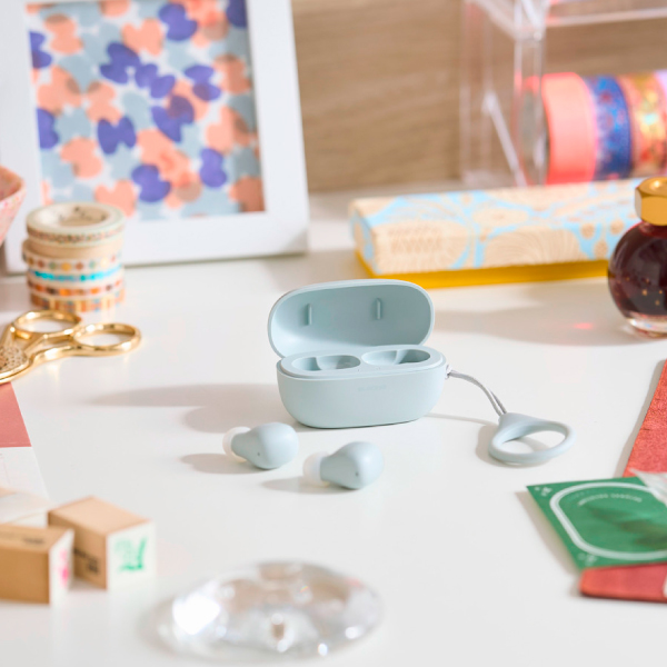 音楽をもっと身近に、お気に入りの文具のように小さくかわいく彩る。「愛らしい」を意味する「SOT( スゥート)」は、ペンケースにも収まる超ミニサイズと軽さで、日常にそっと馴染む小さくてかわいい完全ワイヤレスヘッドホンです。持ち運びに便利なリングストラップ付きで、かばんの中でも迷子にならず毎日一緒にお出かけできます。