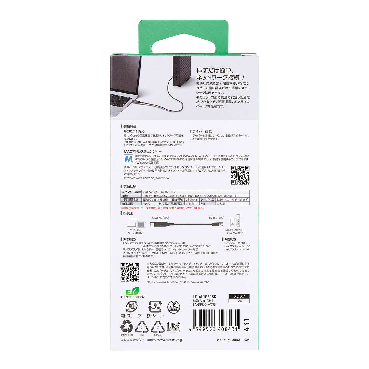 有線接続でネット環境を快適に!有線LANポートがないノートパソコンやゲーム機に接続するだけで、安定した通信ができるUSB-A有線LAN変換ケーブルです。ドライバーのインストールが不要で、高速通信の快適なインターネット環境がこのケーブル1本で実現します。