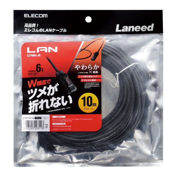 プロテクタと新素材コネクタ採用のダブル構造で通常の使用環境では絶対にツメが折れない!周波数帯域250MHzを保証するギガビット・イーサネットに対応。ケーブルが柔かく取り回しがしやすい、カテゴリー6に準拠したやわらかLANケーブル。※1000回の屈曲検査合格(当社検証)