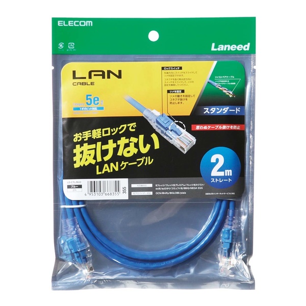 思わぬケーブル抜けを防止するロックスイッチ付き!100BASE-TXや1000BASE-Tといった環境で安定したデータ転送が可能なカテゴリー5E対応LANケーブル。