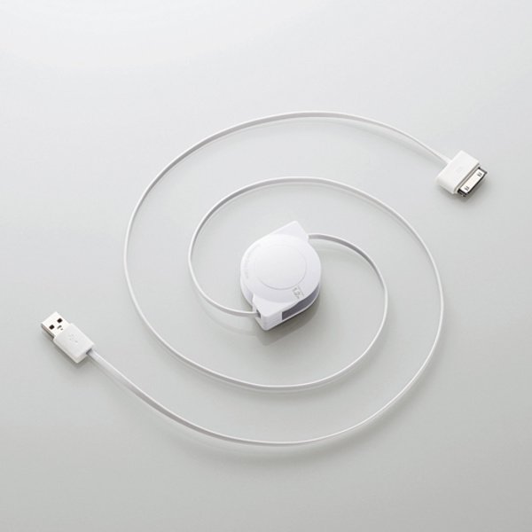 持ち運びや収納に便利な巻取りタイプ。Dockコネクタ搭載のiPhone・iPad・iPodとパソコン・AC充電器のUSBポートを接続して充電・データ通信ができる巻取りタイプのUSBケーブル。