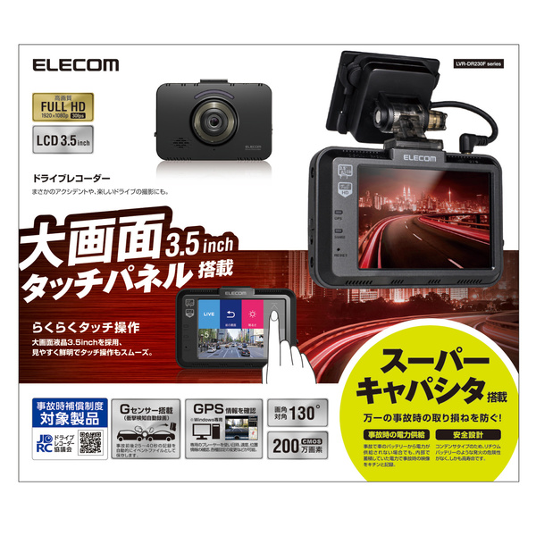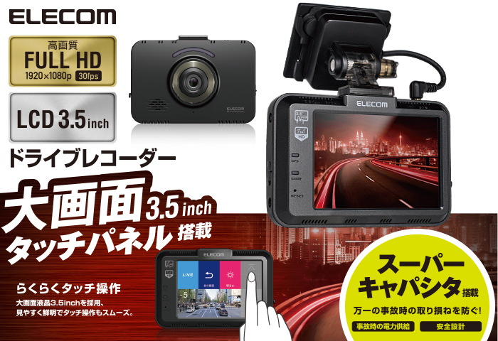 大画面3.5インチ液晶タッチパネルで快適操作。まさかの瞬間をしっかり記録できるFullHD対応・スーパーキャパシタ搭載のドライブレコーダー。