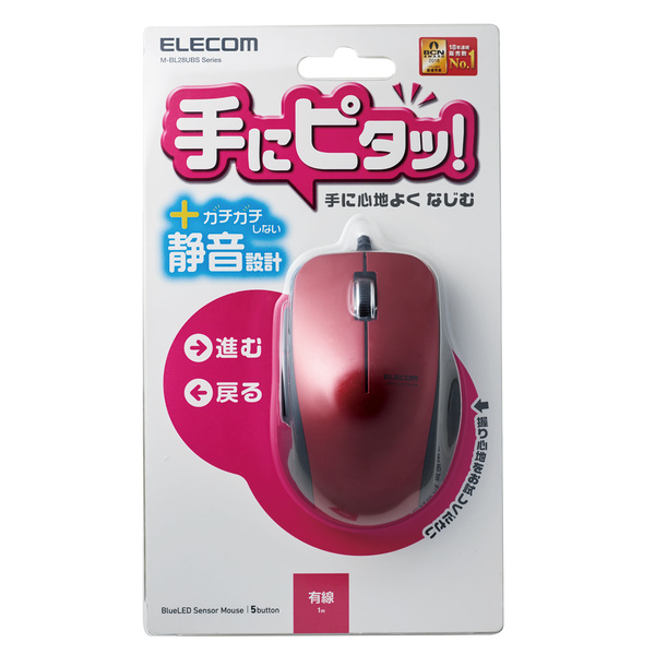 手に心地良くなじみ、握りやすい“手にぴた”設計のため、疲れにくく、長時間のマウス操作をする方にお勧めの5ボタンBlueLED有線マウスです。