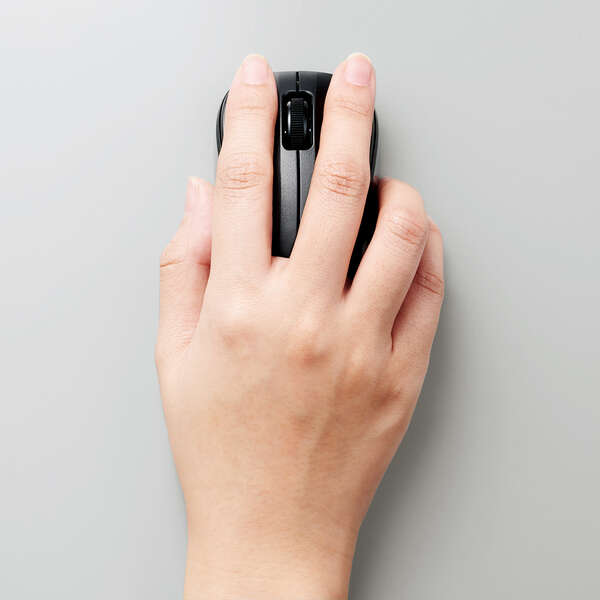 電池を入れてもわずか約59gの軽量設計。軽い力で操作できるため長時間の操作も快適で、持ち運びにも便利です。握る力に自信のない方や長時間マウスを操作される方におすすめです。