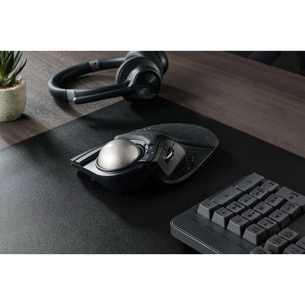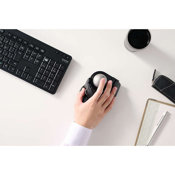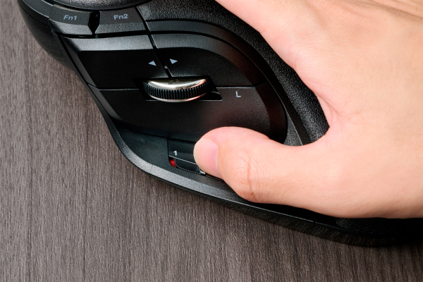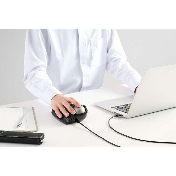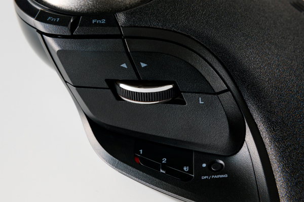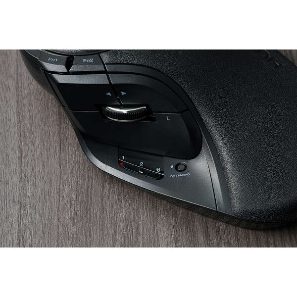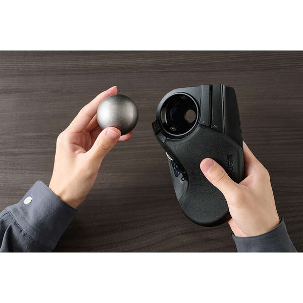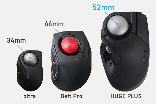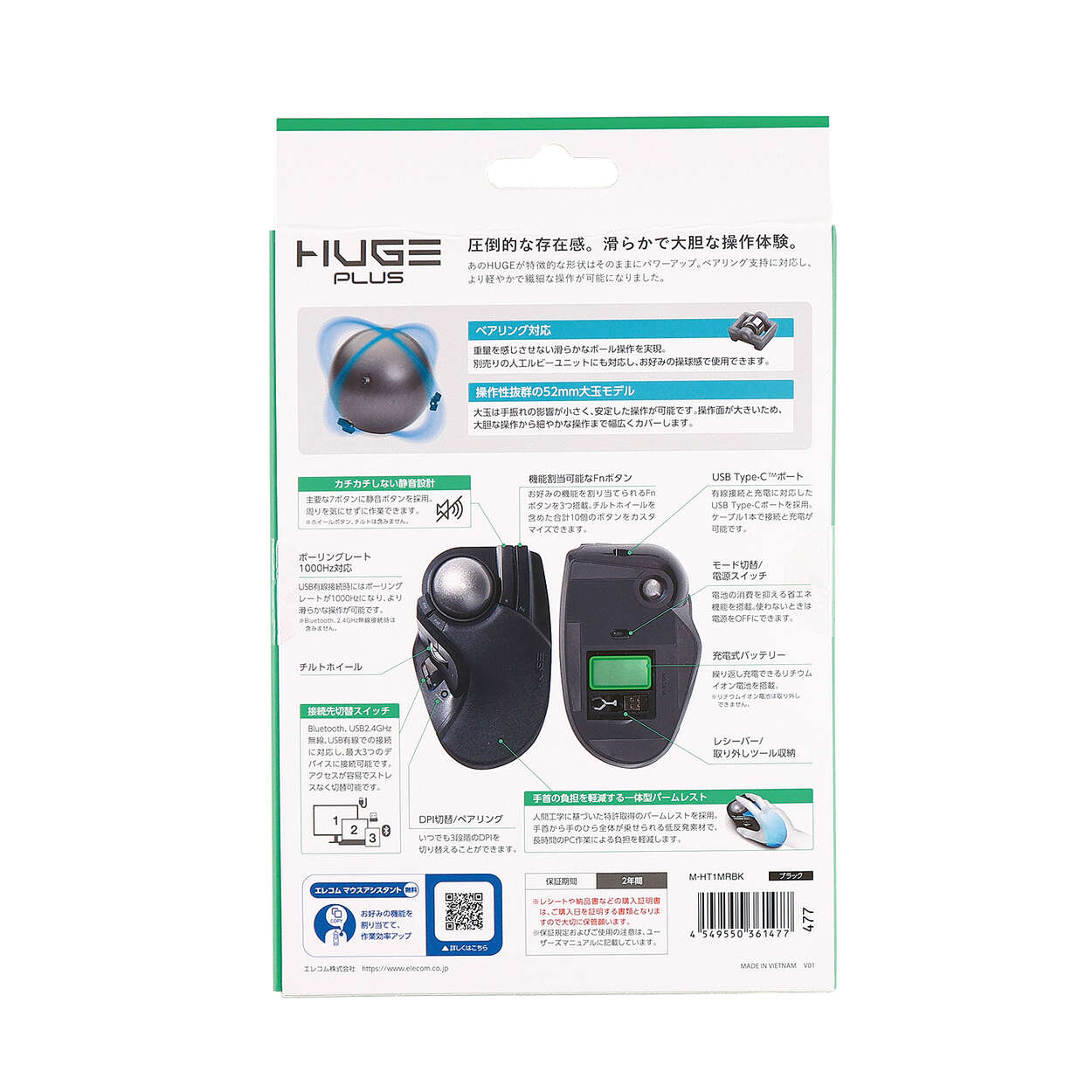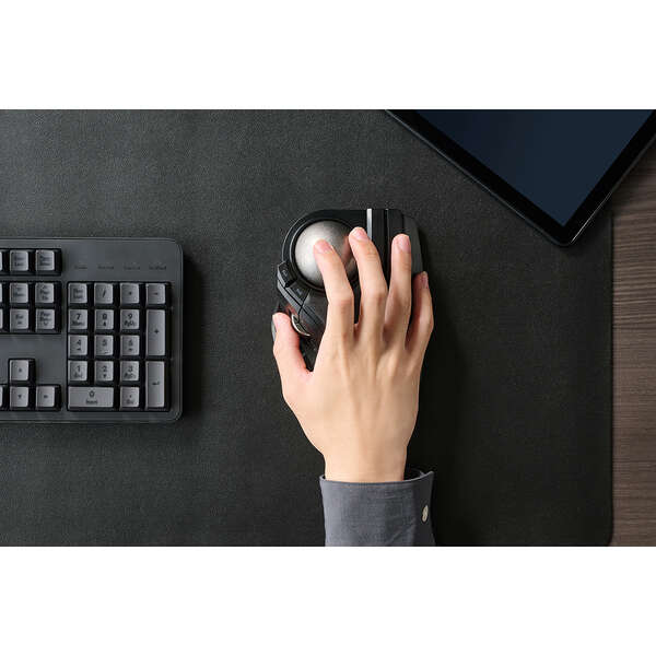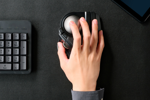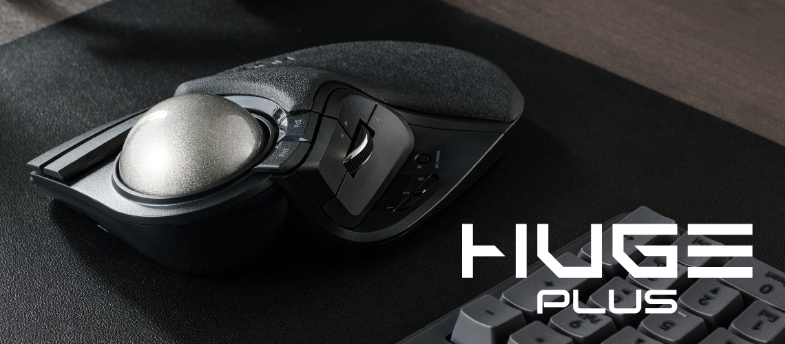 直径52mmの大型ボールにより、一度の操作でポインターをより広範囲に動かせる人差し指タイプのマルチ接続ワイヤレストラックボールマウス“HUGE PLUS”です。