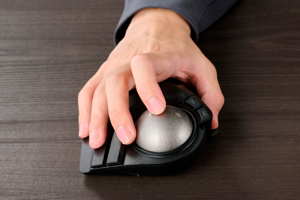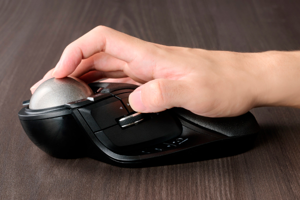 ベアリング支持を採用。 滑らかなボールの回転を実現し、腕への負担を減らします。 また、大画面での操作に便利な、高速移動を可能にします。