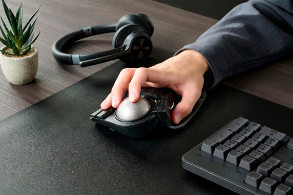 直径52mmの圧倒的な存在感と、繊細な操作を可能にする軽やかさを両立した操球感!「マルチ接続×ベアリング対応」モデルに進化した“HUGE PLUS”が誕生。Bluetooth(R)と無線レシーバー、有線のマルチ接続可能な、人差し指タイプのワイヤレストラックボールマウスです。パームレスト搭載と、滑らかなボールの回転を生むベアリング支持ユニットの採用で、手首から腕への負担を軽減します。