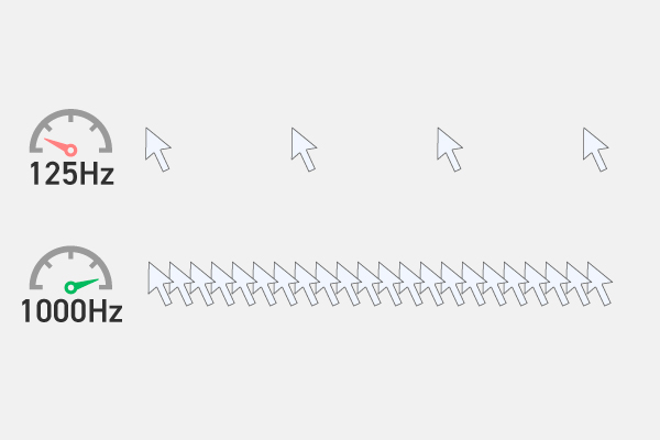 USB有線接続時にはポーリングレートが1000Hzになり、より滑らかな操作が可能です。