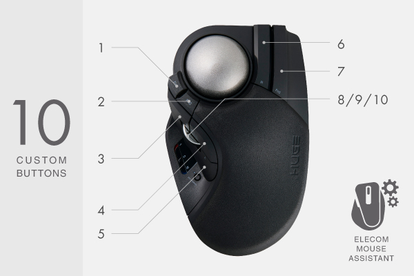 8つのボタンと左右スクロールの2方向、合計10カ所にお好みの機能を割り当てることができます。 ボタンの機能割り当ては、無料でダウンロードできる「エレコム マウスアシスタント」を利用して変更可能です。