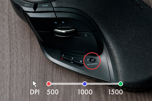 速度変更ボタンにより、ポインタの移動速度を500/1000/1500カウントの3段階に切り替えできます。