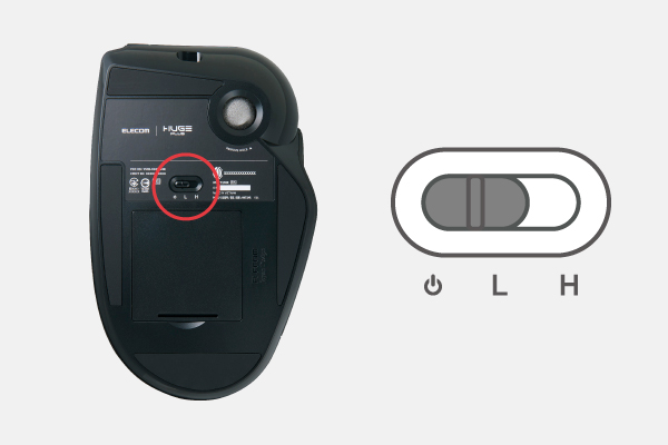 電源OFF/ローエナジーモード/ハイスピードモードの切り替えができる、3段階のスライドスイッチを本体裏面に搭載しています。