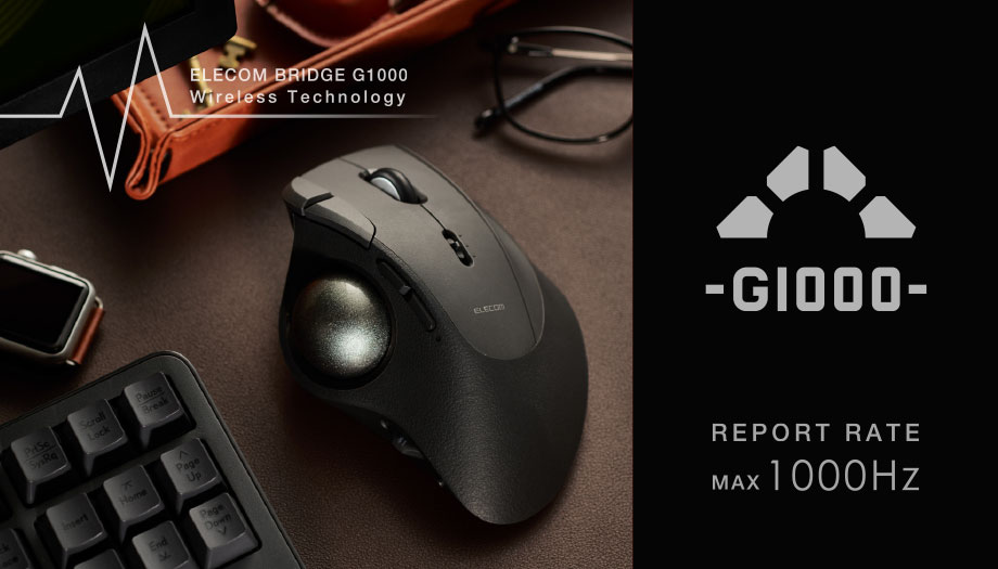 ELECOM Bridge G1000ワイヤレステクノロジーを搭載。 ゲーミングセンサー(PixArt PAW3316DB)とハイグレードMCUにより、最大レポートレート1000Hzに対応し、ゲーミング用途にも耐えうる通信とトラッキング性能を実現しています。