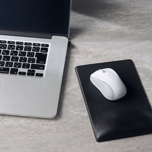 ノートパソコン に挿したまま持ち運んでも気にならない1円玉サイズの超小型レシーバを採用。マウス本体に収納することもできるため、紛失しにくく、持ち運びにも便利です。