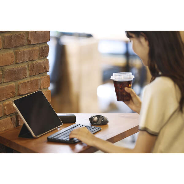 コンパクトでも機能は本格派!親指操作タイプの静音モバイルトラックボール"bitra"です。Bluetooth(R)接続と無線2.4GHz接続の切り替えスイッチを搭載し、2台のデバイスをスムーズに操作可能。自宅とオフィスなどの複数環境でもストレスなく作業できます。手のひらに収まる小型設計と収納ポーチ付きで、持ち運びに便利です。