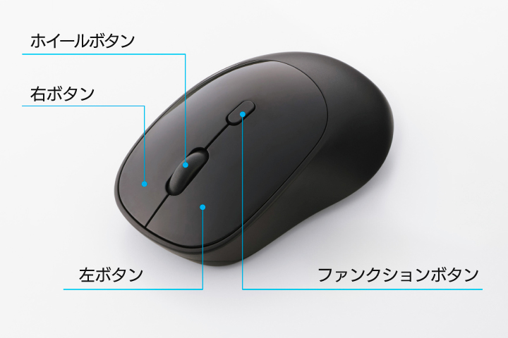 左右ボタンとホイールボタンに加えて、カスタマイズ可能なファンクションボタンをプラスした、計4つのボタンを搭載しています。