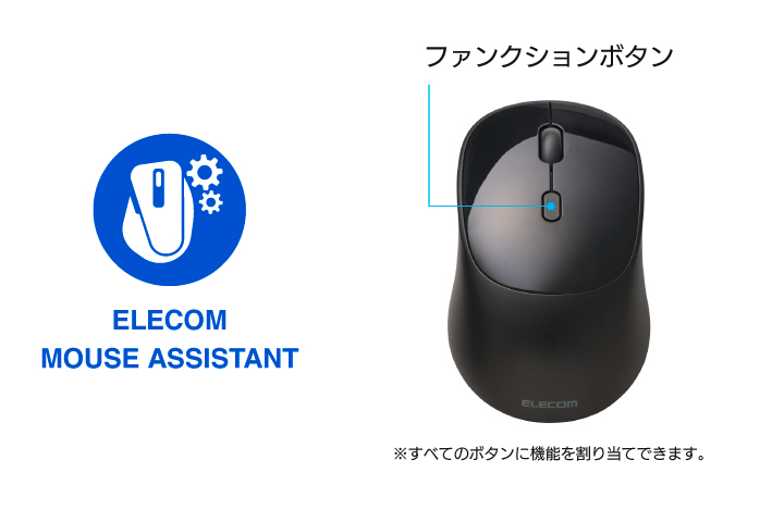 無料でダウンロードできるソフトウェア「エレコム マウスアシスタント」を利用してよく使う機能などを割り当てられ、マウスを使った作業を効率化できます。