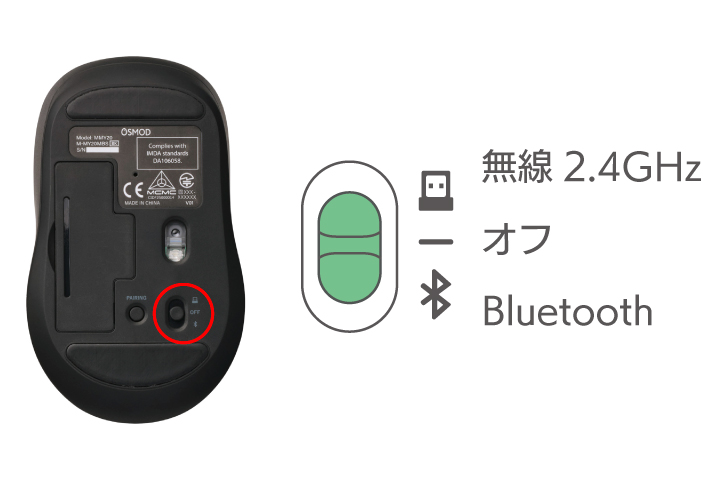 OSMOD 6 USB無線/Bluetooth 静音マウス [6ボタン/Mサイズ]