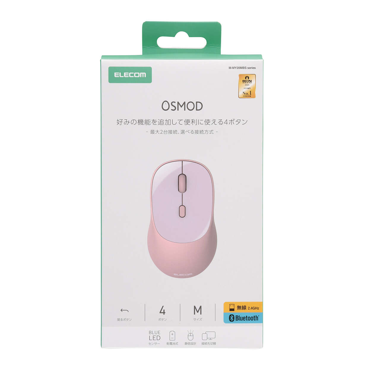シンプルな左右対称形状に、静音ボタンや2台接続可能なマルチペアリング機能を搭載。カスタマイズ可能なファンクションボタンで毎日の作業効率化もサポートする、OSMOD(オスモッド)シリーズの4ボタンマウス ワイヤレスモデルです。