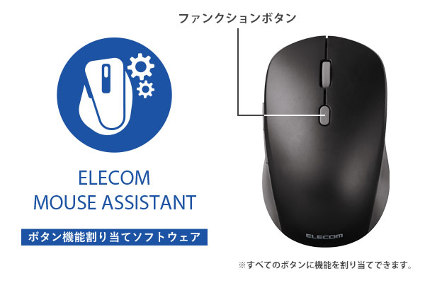 無料でダウンロードできるソフトウェア「エレコム マウスアシスタント」を利用してよく使う機能などを割り当てられ、マウスを使った作業を効率化できます。