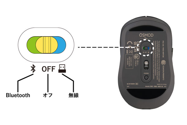 無線2.4GHz接続で1台、Bluetooth接続で1台まで接続機器を本体に保存できます。接続先はスイッチで切り替えられます。