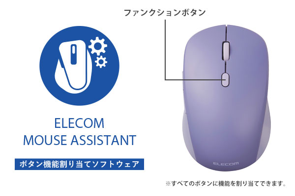 無料でダウンロードできるソフトウェア「エレコム マウスアシスタント」を利用してよく使う機能などを割り当てられ、マウスを使った作業を効率化できます。