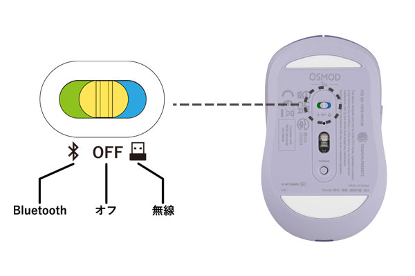 無線2.4GHz接続で1台、Bluetooth接続で1台まで接続機器を本体に保存できます。接続先はスイッチで切り替えられます。