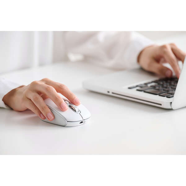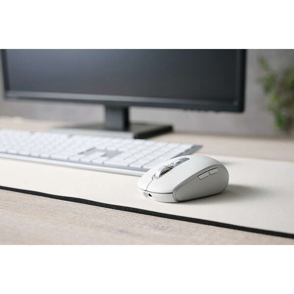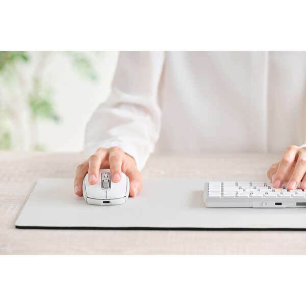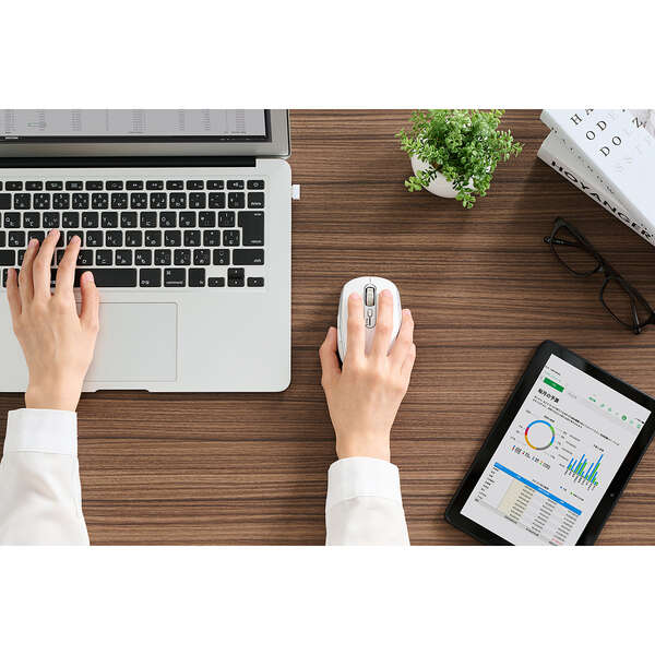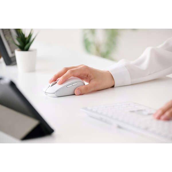 考える手を、止めない。ガラス面でも使える高精度IR LEDセンサーと滑らかな高速スクロールが、思考の流れを止めない精密な操作性を実現します。毎日の作業効率を高める“Precisionist(プレシジョニスト)”シリーズの8ボタンワイヤレスマウスです。