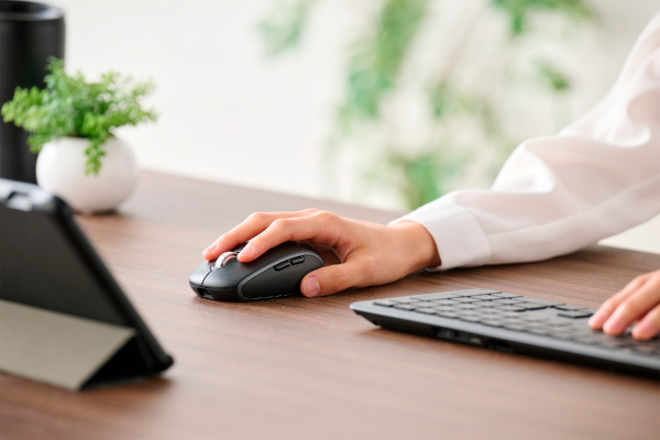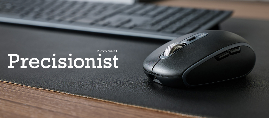 考える手を、止めない。ガラス面でも使える高精度IR LEDセンサーと滑らかな高速スクロールが、思考の流れを止めない精密な操作性を実現します。毎日の作業効率を高める“Precisionist(プレシジョニスト)”シリーズの8ボタンワイヤレスマウスです。