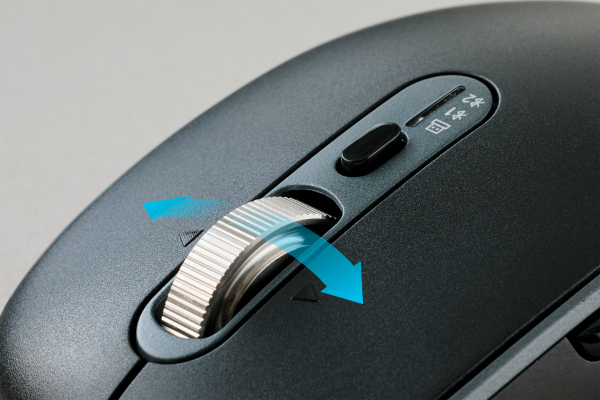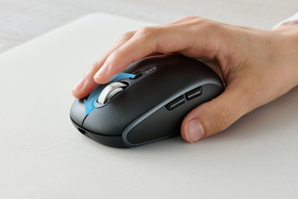 傾けるだけで横スクロールが可能なチルトホイールを搭載。 ホイールだけで上下左右にスクロールが可能です。 高速スクロール機能と合わせて、ExcelやWebブラウザでの作業効率が大幅に向上します。