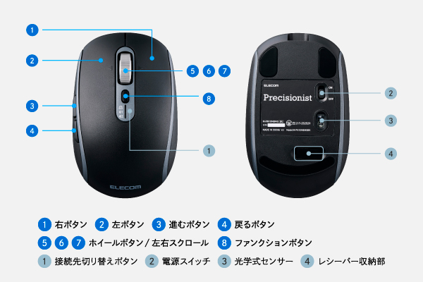 “Precisionist(プレシジョニスト)”シリーズの8ボタンワイヤレスマウスです。