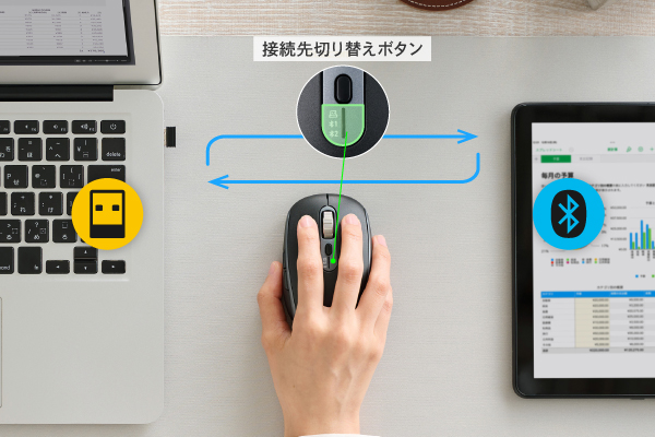 スイッチ一つで接続先を簡単に切り替えられるため、家ではパソコン、外ではタブレットなど、複数のデバイスを併用している方におすすめです。