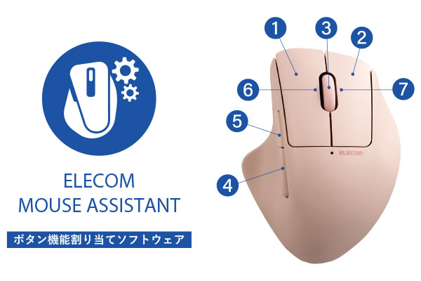 無料でダウンロードできるボタン機能割り当てソフトウェア「エレコム マウスアシスタント」を利用すると、ボタンをお好みの機能にカスタマイズできます。