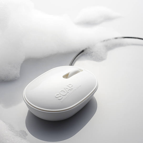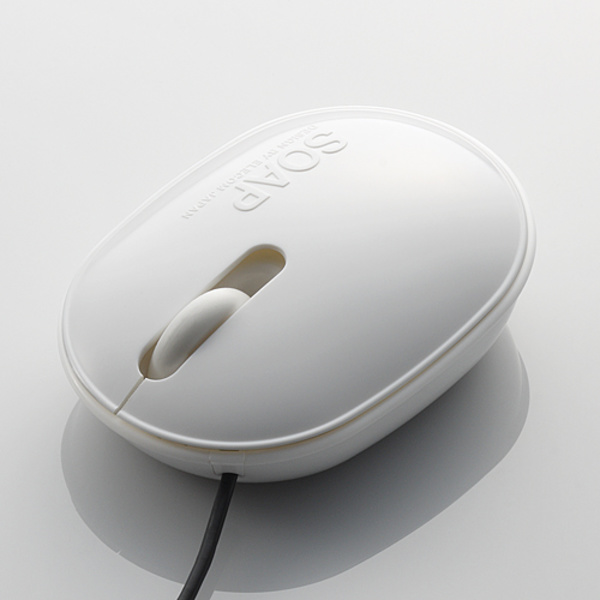 ツルツルすべすべの石けんデザイン!まるで使い込まれた石けんのように、手になじむ形にデザインされた3ボタン光学式マウス“SOAP(ソープ)”。