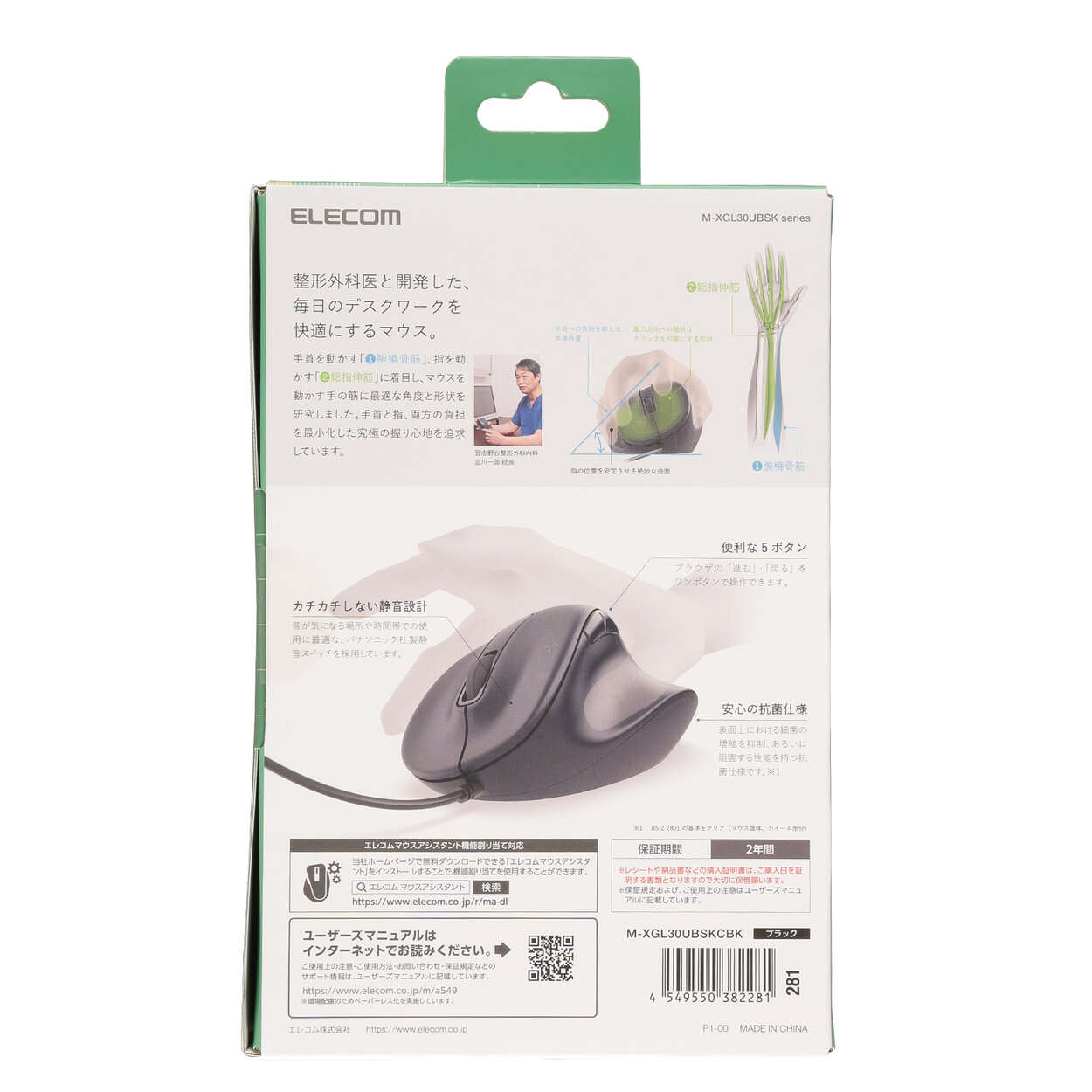 整形外科医との共同開発により自然な手の形のまま使える、握らないマウス“EX-G”シリーズ。手首と指を動かす筋に着目し、マウスを動かす際にかかる身体の負担を極限まで抑えた有線5ボタンマウスです。