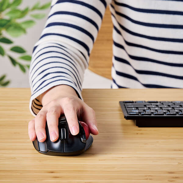 直径2.5mmの大型人工ルビーを支持球に採用。確かな基本性能とかつてない新機能を搭載し、進化したポインタ追従性を実現する親指操作タイプのワイヤレストラックボール。海外用赤玉変更モデル。